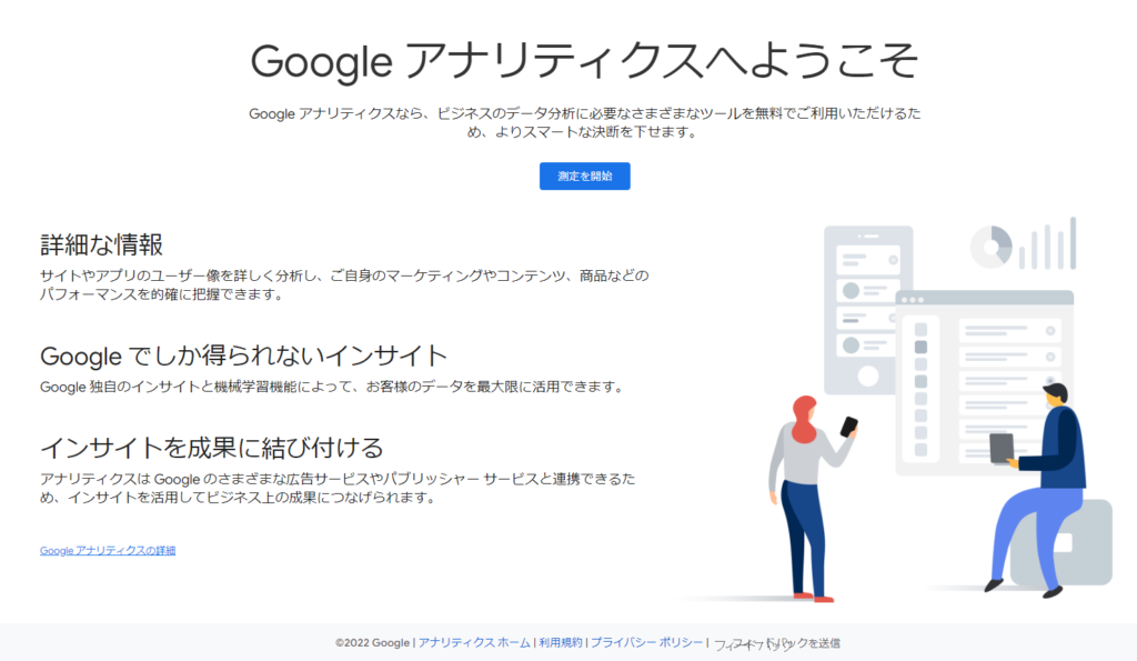 「google アナリティクス」などのようなワードでインターネット検索をしてGoogleアナリティクスの新規登録画面を表示させます。