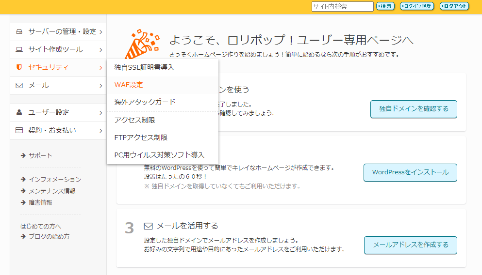 ロリポップで管理するウェブサイトのWAF設定を一時的にオフにする