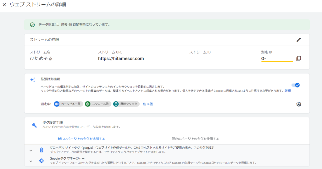 連携方法は現在いくつかあるのですが、個人的には測定IDをCocoonへコピペする方法が手っ取り早くて楽でした。上の画像で示している黄色いライン中の文字列をコピーします。(測定IDは個人情報のため上の画像では見えないようにしています)