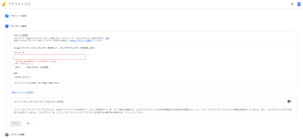 詳細オプション内のユニバーサルアナリティクスプロパティの作成については、これから新規にGoogle アナリティクスを利用する方にとってはチェックする必要は特にないと思います。
