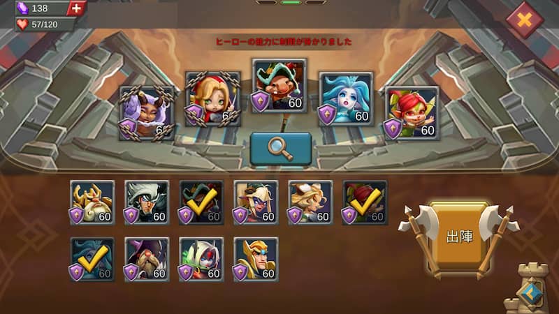 手持ちのヒーロー3人を連れていけるので、盾役1人、回復役1人、遠距離攻撃役1人を選びます。無課金であれば魂の創造者、森の妖精、雪の女王あたりで。ブリキの人形「アストレ」、光の崇拝者、雪の女王「アリス」の各スキルは敵を数秒間だけ行動不能にさせる効果があり、効果が被らないようにスキルを続けて使用すると攻略しやすいです。